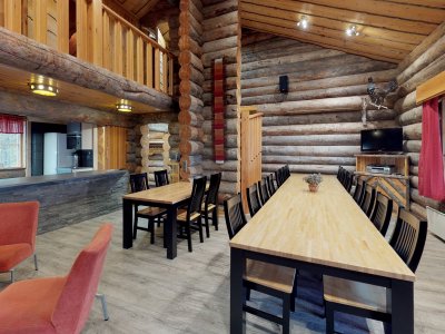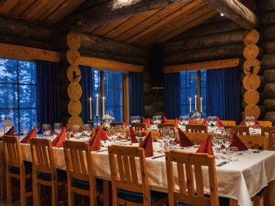 Die wunderschönen traditionellen Blockhütten befinden sich nur wenige Kilometer vom Zentrum Rukas entfernt inmitten der Natur. Es gibt verschiedene Arten von Chalets für die Unterbringung, je nach Gruppengrösse mit drei bis neun Schlafzimmern. Jede Hütte verfügt über eine kleine Küche für die Zubereitung eines Kaffees oder eines „Snacks“, ein gemütliches Wohnzimmer mit Kamin, mehrere voll ausgestattete Badezimmer und natürlich die traditionelle Sauna. Das Hauptgebäude für die Mahlzeiten ist nur eine Minute von den Chalets entfernt. Die Freundlichkeit und Herzlichkeit der Gastgeber sowie die Erfahrung der Guides tragen ohne Zweifel zu einem gelungenen Aufenthalt bei.