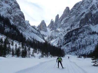 L'étape de ce jour peut probablement être qualifiée d'étape reine tant du point de vue du paysage que de la diversité du circuit sur le fameux parcours du célèbre « Tour de ski » au départ du centre nordique de Toblach (devant votre hôtel). C’est vous qui déciderez de la distance que vous voulez parcourir en direction du lac de Toblach, tout en passant devant les célèbres et majestueuses « Dreizinnen ». Ce parcours sans pareil en Europe emprunte l’ancienne voie ferrée jusqu’à la station de sport d’hiver de Cortina d’Ampezzo en traversant des tunnels et fait exactement 30 kilomètres pour l’aller et autant au retour. Il sera également possible de rentrer en bus local depuis Cortina (après le lunch dans la rue piétonne) ou de rentrer en ski.